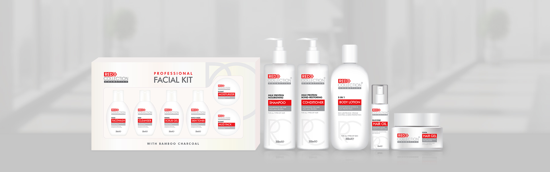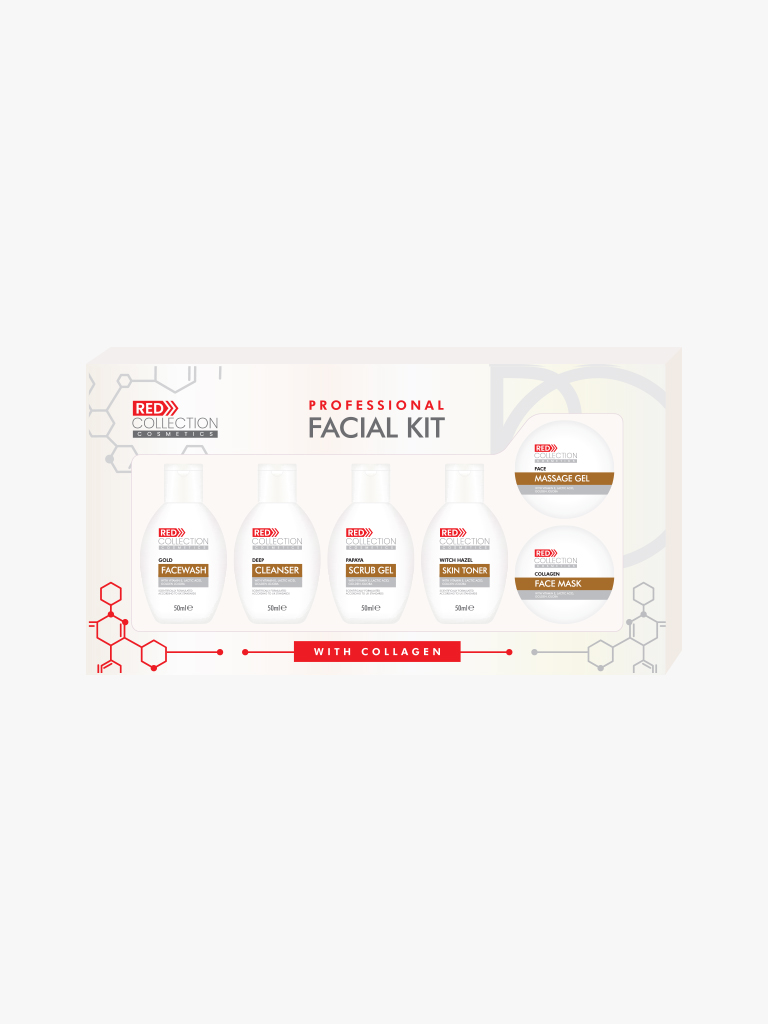 Red Collection Facial Kit contains a total of 6 products (Golld Facewash, Deep Cleanser, Papaya Scrub Gel, Skin Toner, Moisturizer, Mud Pack), which will give you a complete skincare set to pamper yourself.